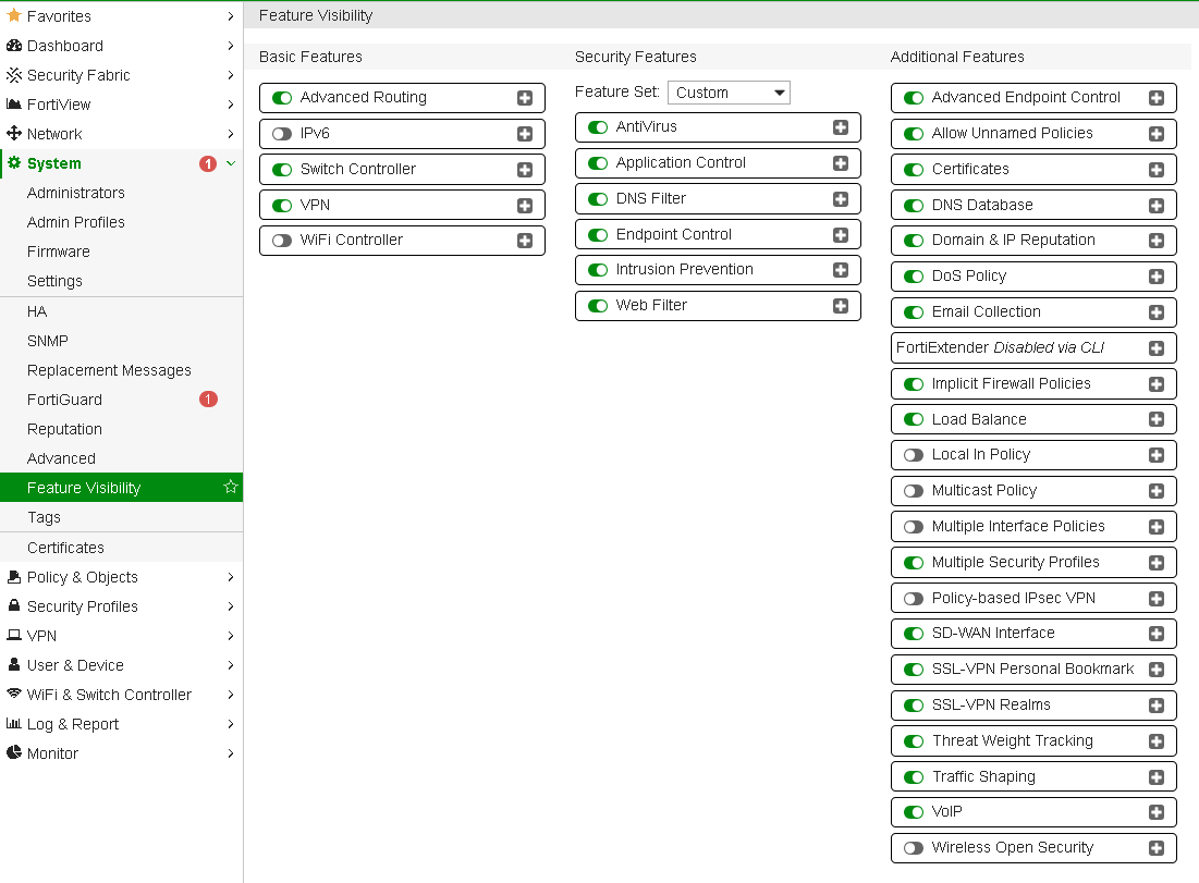 - In the GUI, go to System -> Feature Visibility